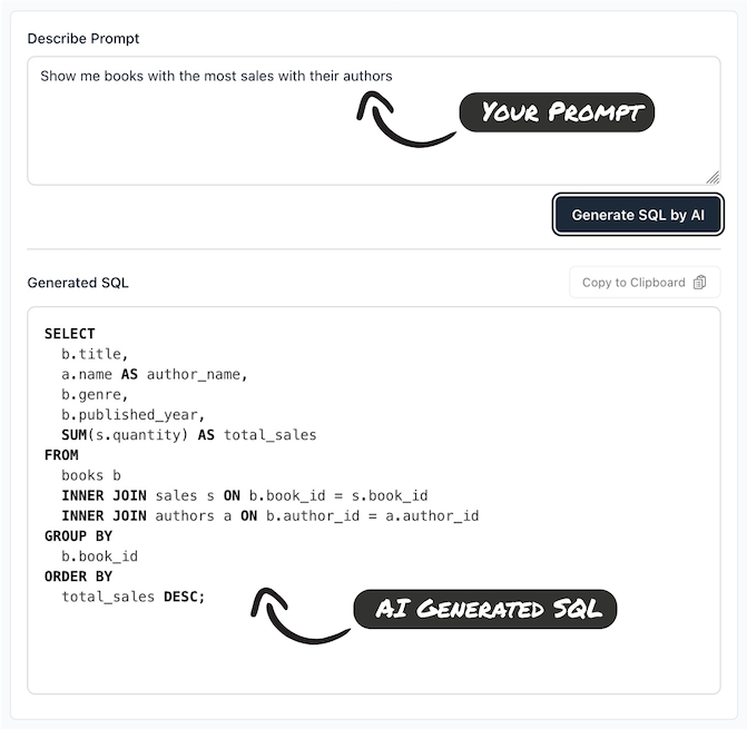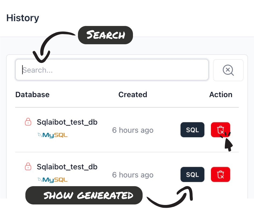 Never lose track of your SQL queries again. Our comprehensive history feature logs all SQL statements generated by our AI, allowing you to revisit, edit, and reuse them whenever needed.