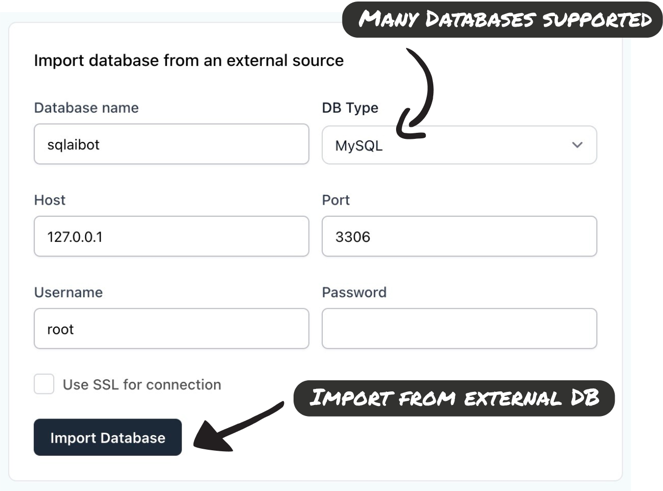 Our AI seamlessly integrates with a variety of databases, ensuring that your SQL generation is not only accurate but perfectly tailored to your specific DBMS requirements.